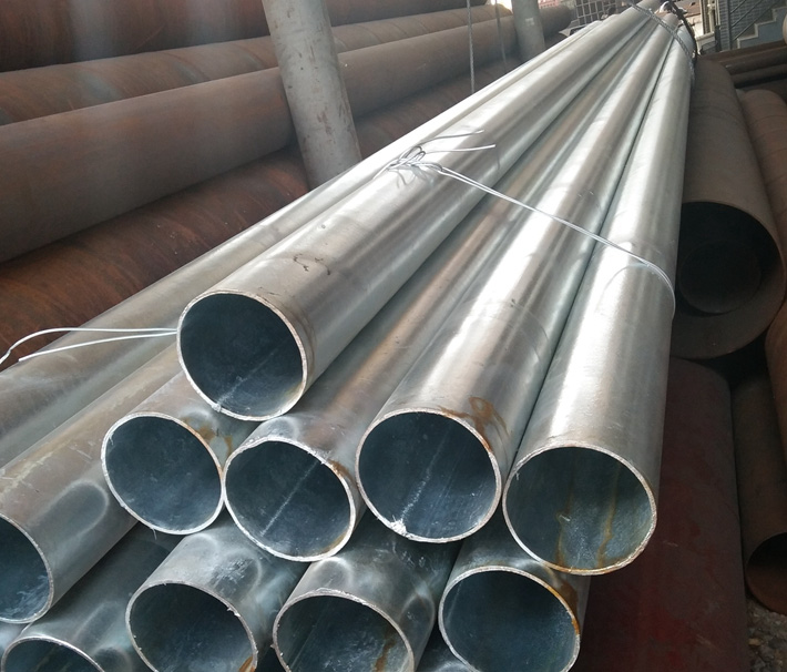 热镀锌管是使熔融金属与铁基体反应而产生合金层,从而使基体和镀层二者相结合。热镀锌是先将钢管进行酸洗,为了去除钢管表面的氧化铁,酸洗后,通过氯化铵或氯化锌水溶液或氯化铵和氯化锌混合水溶液槽中进行清洗,然后送入热浸镀槽中。热镀锌具有镀层均匀,附着力强,使用寿命长等优点。